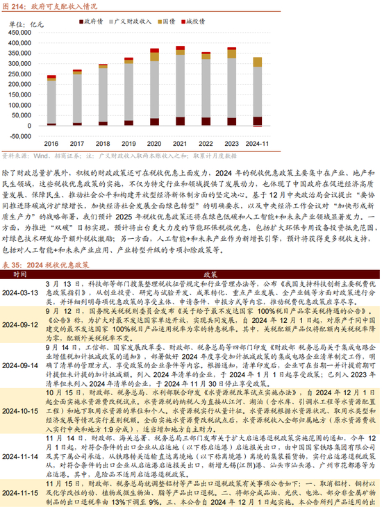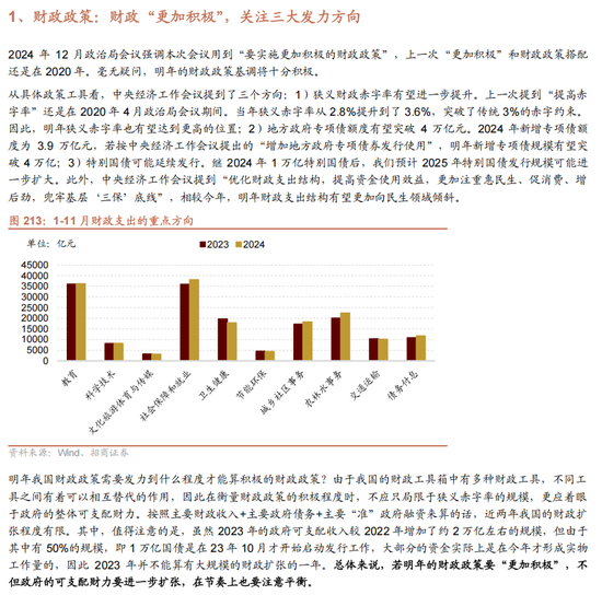 在今年的中央经济工作会议中,明确提出要实施更加积极的财政政策。提高财政赤字率,确保财政政策持续用力、更加给力。加大财政支出强度,加强重点领域保障。增加发行超长期特别国债,持续支持“两重”项目和“两新”政策实施。增加地方政府专项债券发行使用。因此,2025年,我们认为政府整体支出相对过去几年出现较为明显的扩张。