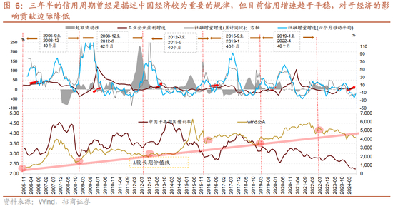 然而,随着2021年房地产调控进一步趋紧,地方政府化债大幕开启,地产融资和地方政府融资告别了高增长时代,自2022年开始,新增社融的波动在进一步下降,房地产和地方政府投资阶段性的不是经济增速的主要贡献。而且,随着人口结构变迁,城镇化水平进一步提升以及中国基建水平不断完善,未来房地产投资和基建投资保持平稳的概率较大,而不太会像以前一样大幅的波动。