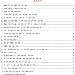 度进一步加大,经济走向温和复苏,流动性保持宽松的背景下有望继续保持上行趋势。在资产荒背景下,由于赚钱效应逐渐积累,居民通过ETF等工具进入资本市场的规模有望进一步延续;政策加持、AI+大产业趋势带来诸多结构性的行业和产业机会。风格方面,当前经济环境和增量资金结构背景下,关注以300质量和科创50为代表的质量龙头和科技科创龙头,行业层面,关注科技创新、扩大内需、供给侧改革三条线索,重点关注电子、传媒、国防军工、家电、机械设备等行业。