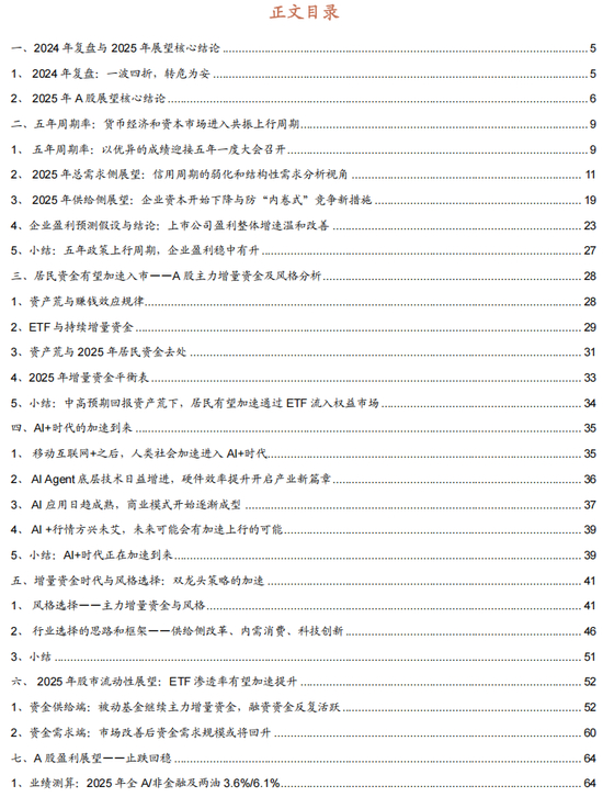 ⚑ 中高预期回报资产荒:存款有望向权益市场搬家。从历史上看,中国增量资金对于某一类型资产的投资行为可以划分为三个阶段:浅尝辄止、渐入佳境和如火如荼。今年9月下旬以来市场出现明显上行后,部分投资者持有的ETF开始扭亏为盈,进入浅尝辄止阶段。当前10年期国债收益率进入“1时代”,理财产品及存款的预期回报率均在下降,中高预期回报率资产缺失。2025年如果在政策和经济回暖的作用下股市赚钱效应持续改善,那么居民资金入市节奏有望进一步提升,投资者对于权益资产可能逐渐进入到渐入佳境以及如火如荼的状态。