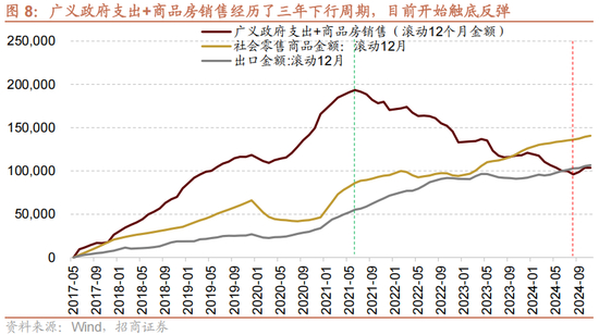 尽管在2023年后中央政府加大的支出力度,但由于中央政府在整个政府中支出比例较低,整体政府支出仍然承压。不过今年三中全会之后,地方政府支出开始边际改善,从底部反弹。而中央政府支出也开始加大力度,整体来看,长达三年的政府支出承压的状态正在发生改变。