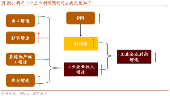 3)基建地产,考虑到此前基建投资增速相对较高,地产力求止跌回稳,进一步大幅扩张的概率相对较小,预计对盈利的边际贡献有限(→);