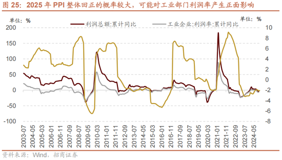 2)社零增速受收入预期下滑影响,2024年中枢下移至3.5%附近,考虑到2025年扩内需政策进一步发力必要性提升,乐观预期“两新”、消费券等扩内需政策有望提升社零4个百分点,全年社零增速有望回升至7%左右,对盈利的贡献相对较高(↑);