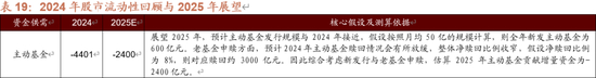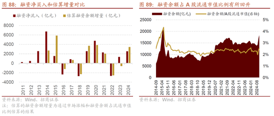 924一揽子增量政策出台以来,市场风险偏好明显改善,融资资金由此前的持续净流出转为净流入。截止2024年11月,融资资金净流入2545亿元,目前融资余额占A股流通市值的比例约2.53%,较2023年末的2.49%已经明显回升。展望2025年,假设我们在前文中的逻辑能够如期兑现,股票市场继续维持上行趋势,参考历史,融资余额占A股流通市值的比例平均为2.5%左右,据此估算,则2025年融资资金有望净流入约1600亿元。