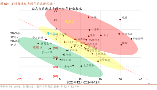 在上一轮牛市(2019~2021年)表现最好的食品饮料、新能源、医药生物、美容护理2024年表现仍然不佳,顺周期板块普遍表现不佳。