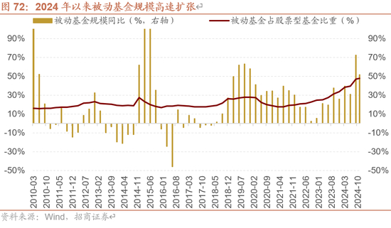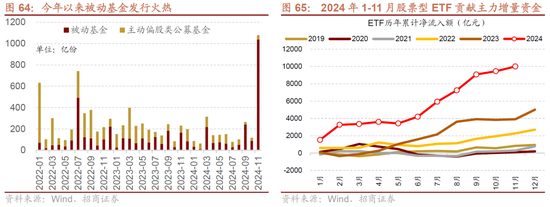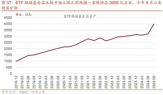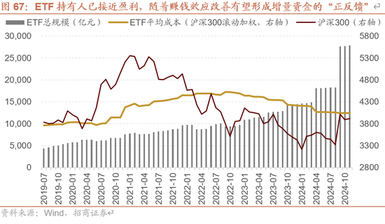 ETF有可能成为2025年之后市场增量资金的关键力量,推动指数不断上行。从历史上看,中国增量资金对于某一类型资产的投资行为,可以划分为三个阶段:浅尝辄止、渐入佳境和如火如荼。自2023年下半年起,ETF市场迎来了规模的大幅增加,今年9月下旬以来市场出现明显上行后,部分投资者持有的ETF开始扭亏为盈,进入浅尝辄止阶段,随后部分资金获利赎回,10月和11月ETF联接基金批量发行,银行渠道认购热情明显提升。如果2025年上半年,在政策和经济回暖的作用下市场能在目前这个平台基础上再上一个台阶,那么ETF投资者就可能逐渐由“渐入佳境”进入“如火如荼”的阶段,从而形成增量资金入市——市场上涨——增量资金入市的正反馈。