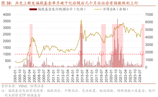 从历史数据来看,重要股东减持规模与A股走势存在高度相关性。减持规模6个月滚动平均规模与万得全A的相关系数高达0.7,部分阶段减持的拐点相比A 股的拐点存在一定时滞。另外重要股东减持规模与A股限售解禁规模高度相关,相关系数达到0.79。展望2025年,解禁规模上升后减持规模或相应回升,市场改善后重要股东减持动力也有所增加,综合两个因素,按照月均减持100亿元保守估计2025年净减持规模为1200亿元。