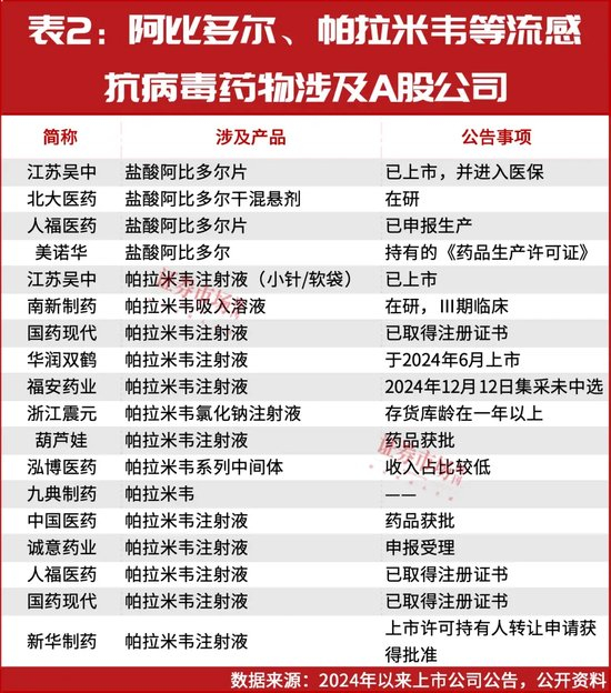 那么,哪些公司拥有哪些对抗流感的“特效药”呢?