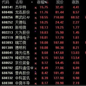 半导体板块午后大幅走高,截至收盘,杰华特涨近16%,龙迅股份涨近12%,大为股份、康强电子、瑞芯微、德明利等均涨停,海光信息涨近10%。值得注意的是,寒武纪大涨超10%报718元/股,续创历史新高,最新市值2997亿元。