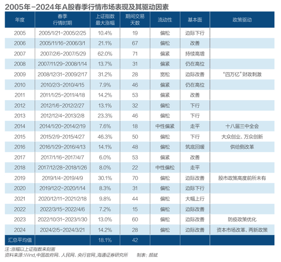 不过,海通证券认为,开年下跌并不能改变春季行情的历史规律,春季行情年年如约而至,即使在历史上出现开年下跌的情况,随后依然会迎来春季行情。