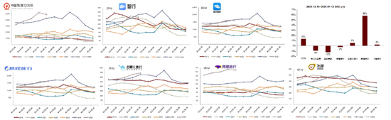 我们观察到春节假期国内旅游人次或稳健增长,多元化、结构化的消费趋势延续,能提供亲子团聚、悦己等情绪价值的产品和体验更易吸引消费者。出行(尤其是机酒)相关的价格可能仍在一定程度上面临24年春节较高基数的压力,期待更多更大力度的政策落地、直接和间接提振社服消费。