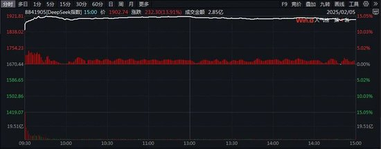 2月5日,A股迎来蛇年首个交易日。DeepSeek概念股掀起涨停潮,概念板块以13.91%的涨幅,位居A股涨幅榜第一。