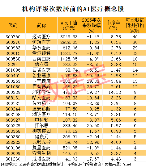 机构扎堆关注的AI医疗概念股名单