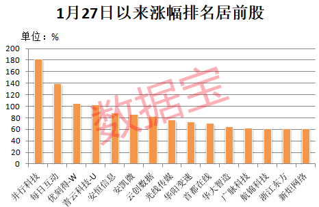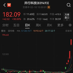 据证券时报·数据宝统计,截至2月10日收盘,1月27日以来的短短5个交易日内,并行科技累计涨幅达到182.18%,排名同期A股涨幅榜第一位,成为本轮人工智能(AI)行情的最大黑马。在并行科技的带动下,北交所股票近日成交活跃度开始大幅提升,今日盘面上,广脉科技、旭杰科技、云创数据、新赣江录得30cm涨停板。