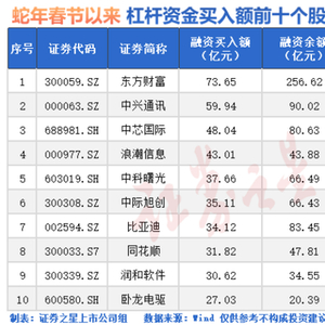 从个股角度看,杠杆资金集中涌向科技龙头与行业标杆企业,东方财富、中兴通讯、中芯国际等个股领跑。