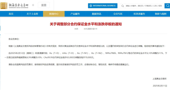 2月11日晚间,上海黄金交易所发布《关于调整部分合约保证金水平和涨跌停板的通知》。