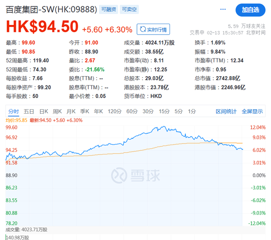 百度股价涨超6%。据百度官方公众号消息,文心一言将于4月1日零时起全面免费,所有PC端和App端用户均可体验文心系列最新模型。同时,即日起,文心一言上线深度搜索功能,该功能也将于4月1日起免费开放使用。