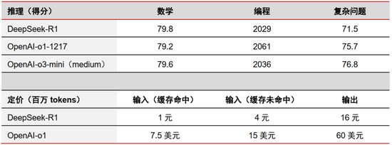表1:DeepSeek-R1对标OpenAI o1具有性价比优势