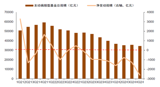图表13:A股主动偏股型基金总规模缩水,季度净赎回规模有所走阔