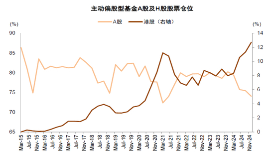 图表12:主动基金对港股配置比例持续上升,目前已上升至历史最高水平