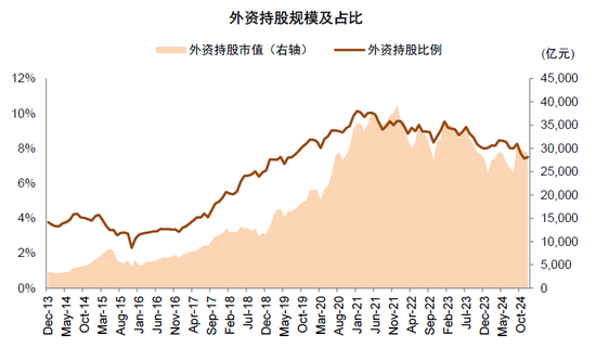 图表7:2021年以来外资持A股市值及持股占比有所下滑