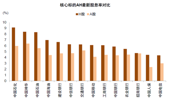 图表23:AH两地上市的典型红利标的,港股股息率明显高于A股
