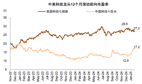 图表25:我们估算的“科技十巨头”的市盈率估值整体从12倍修复至17倍左右