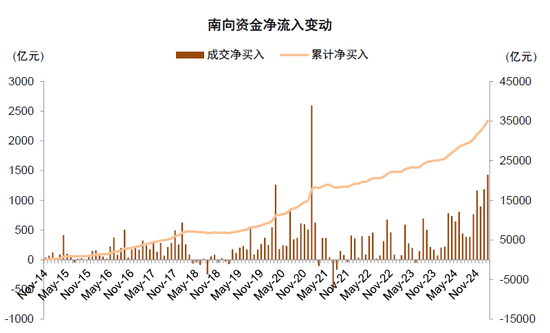 图表10:2024年南向资金净流入7440亿元创港股通开通新高,年初以来大幅净流入2615亿元