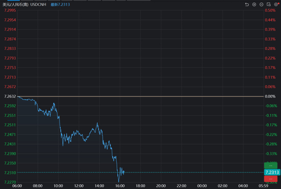 人民币持续拉升。截至发稿,离岸人民币兑美元日内涨超300点,报7.2313。