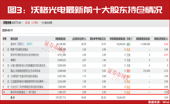 再比如消费电子公司沃格光电,公司主要从事光电玻璃精加工业务、背光及显示模组、车载显示触控模组、玻璃基芯片板级封装载板。最新回购公告显示,以3月11日登记在册的数据,基本养老保险基金二一零六组合以148.04万股的持仓,也新进成为了公司的第十大股东(见图3)。