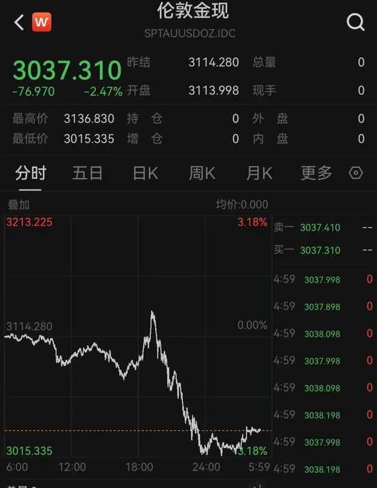 另外,之前大涨的黄金也出现大跌。上周五,伦敦黄金收盘跌幅为2.47%,报3037.31美元/盎司,创下今年以来最大单日跌幅。