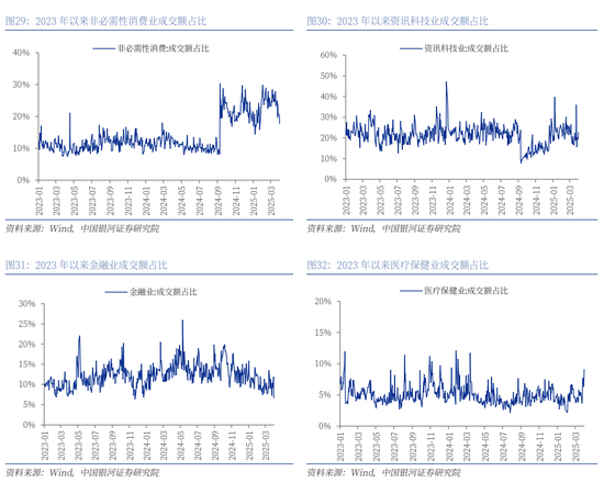 从拥挤度情况来看,2025年以来港股科网股成交额占比先升后降。截至3月31日,非必需性消费业成交额占比为20.46%,处于2019年以来93%分位;资讯科技业成交额占比为19.26%,处于2019年以来44%分位。近期,医疗保健业投资拥挤度逐渐上升,3月31日,医疗保健业成交额占比为6.3%,处于2019年以来83%分位。
