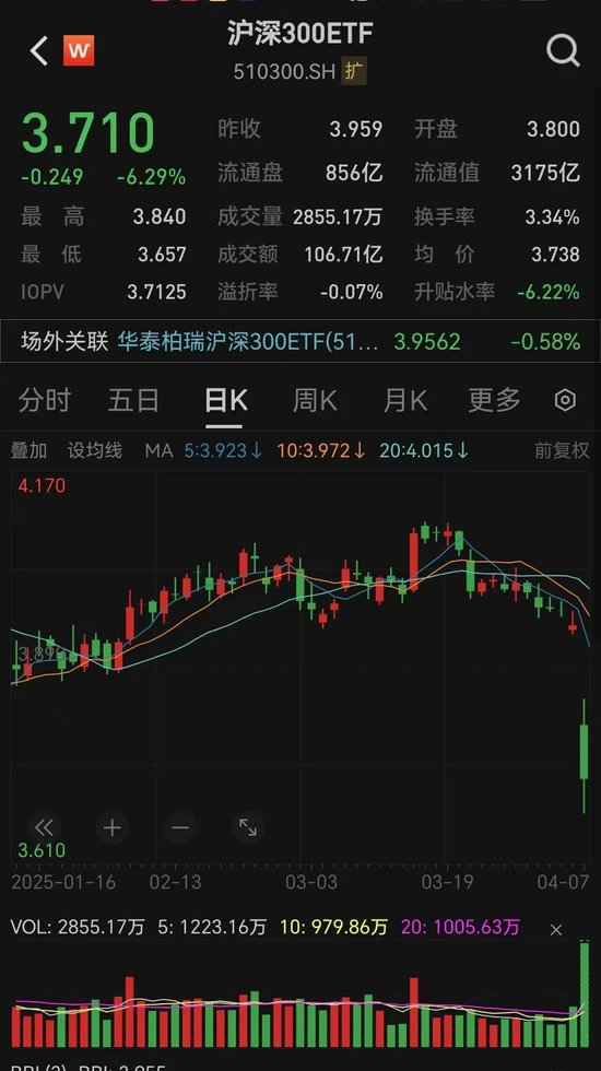 4月7日早盘,A股指数普遍调整,多只核心宽基ETF成交额显著放量。Wind数据显示,截至午间收盘,华泰柏瑞沪深300ETF二级市场成交额突破106亿元,比前一交易日放量141.88%,相比过去一周的日均成交金额更是大增229.08%,创出去年11月11日以来新高。