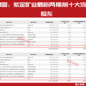 紫金矿业近日披露了2025年一季报,其中截至一季度末的大股东名单显示,阿布扎比新进现身在了公司的前十大流通股股东名单,持股16312.58万股(见附图)。