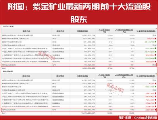 也是在近日,紫金矿业由于回购事项公布了截至4月7日的大股东名单,其中阿布扎比再次加仓公司222.63万股至16535.21万股(见附图)。而4月7日正是美国“对等关税”对A股影响最大的一天,紫金矿业当天下跌了9.94%,因此阿布扎比此次加仓不排除“抄底”的可能。同时,“抄底”的知名机构还有高毅资产邓晓峰管理的两只基金产品等。