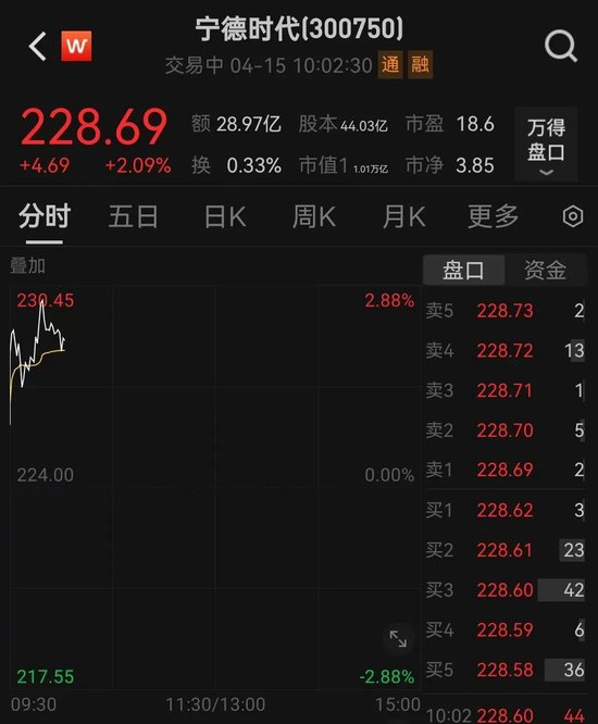 该板块的龙头股宁德时代盘中涨近3%。