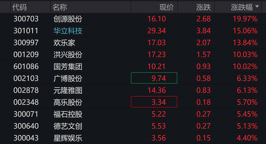 今日早盘,创源股份、华立科技、思美传媒、广博股份、洪兴股份、京华激光、元隆雅图等开盘直线涨停。截至发稿,受大盘拖累,华立科技、广博股份等涨幅收窄。
