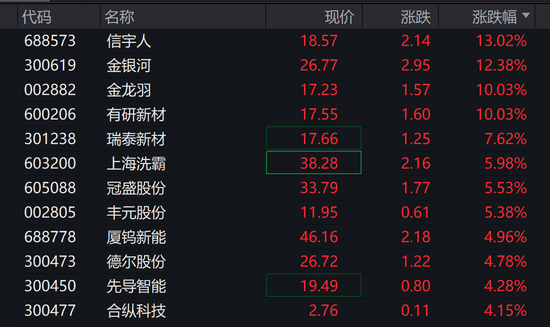 有研新材、金龙羽涨停,金银河涨超12%。