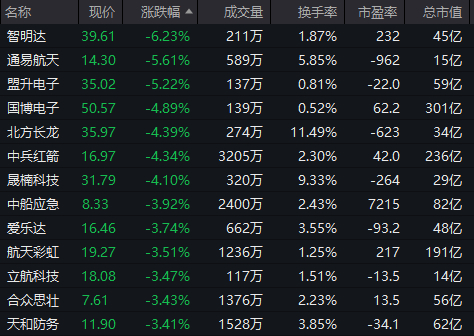 航天军工板块集体走低,智明达、通易航天、盟升电子等跌幅居前。