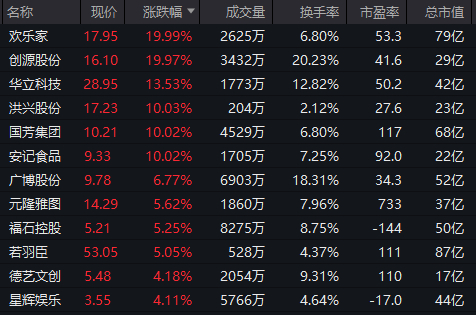 首发经济板块局部活跃,欢乐家、创源股份实现20CM涨停,洪兴股份、国芳集团等涨停。