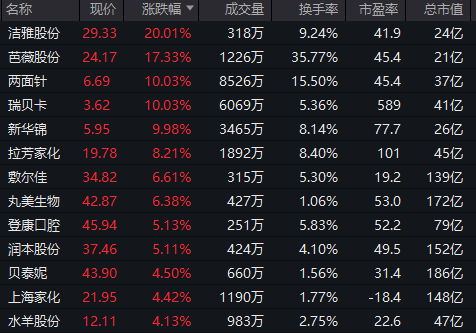 医美概念同样走高,洁雅股份20CM涨停,两面针、瑞贝卡、新华锦均直线拉涨停。