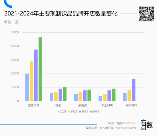 截至去年底,蜜雪冰城拥有46479家门店,是全球最大的连锁品牌。