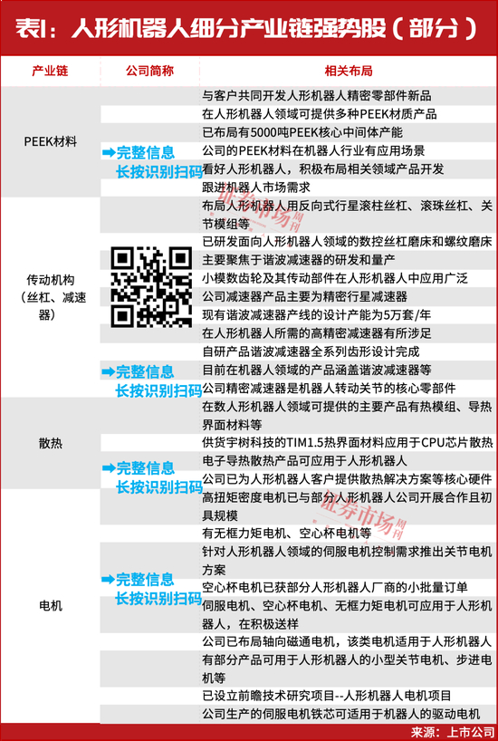 下面对边惠宗提及的上述部分细分产业链进行展开分析。近期连续大涨的PEEK材料(聚醚醚酮)即是人形机器人轻量化材料的重要分支,它能够减轻重量、提升灵活性与负载能力,可用于传感器、减速器、结构件等多个领域。电机与传动机构是人形机器人的重要关键部件,无论从效能以及成本构成等角度来看都是核心产业链环节。