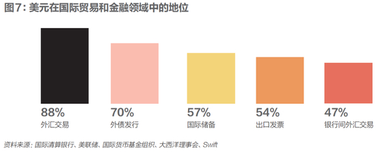 虽然美国仅占全球经济体量的四分之一左右,但全球官方外汇储备中超过57%是美元。不仅如此,全球88%的外汇交易都涉及美元,约60%的国际贷款和存款、70%的国际债券发行均以美元计价。