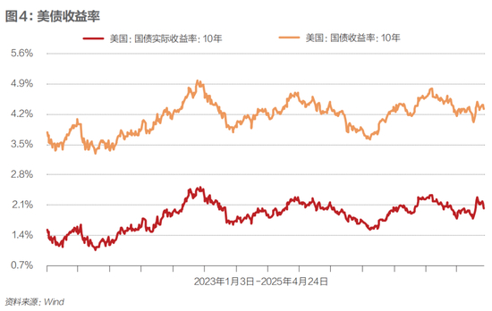 在此背后,黄金传统的定价模式正在重构。黄金是不生息资产,其价格与美债收益率反向。美债收益率下降意味着持有黄金成本下降,金价因此上涨。不过,2022年以来,在黄金价格上涨之际,代表美国实际利率的10年期通胀保值债券(TIPS)收益率则有所上涨。