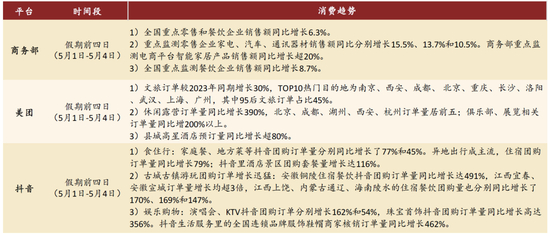 旅游:“五一”假期出行热情高涨,旅游消费呈现稳中有进、多元并发态势;出入境游表现亮眼。
