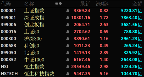 北证50指数高开高走大涨近3%,创近2个月来新高,并逼近历史最高点;创业板指亦涨超2%,回补4月7日向下跳空缺口。上证指数,深证成指等也纷纷创出阶段性新高。超4100只个股上涨,成交温和放大至1.34万亿元。