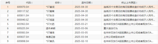 5月以来,*ST中程(300208.SZ)、*ST人乐(002336.SZ)、*ST恒立(000622.SZ)、*ST工智(000584.SZ)纷纷宣布收到终止上市事先告知书,或挥别资本市场。