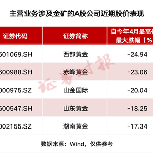 统计数据显示,自今年4月的高位算起,多家金矿类公司的股价普遍跌势较大,其中多只股票期间最大跌幅已经超过两成,明显跑输同期A股大盘表现。