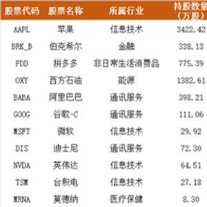 其中幅度最大的是谷歌,减持超七成,使得谷歌从重仓第3位直接下降到第6位。